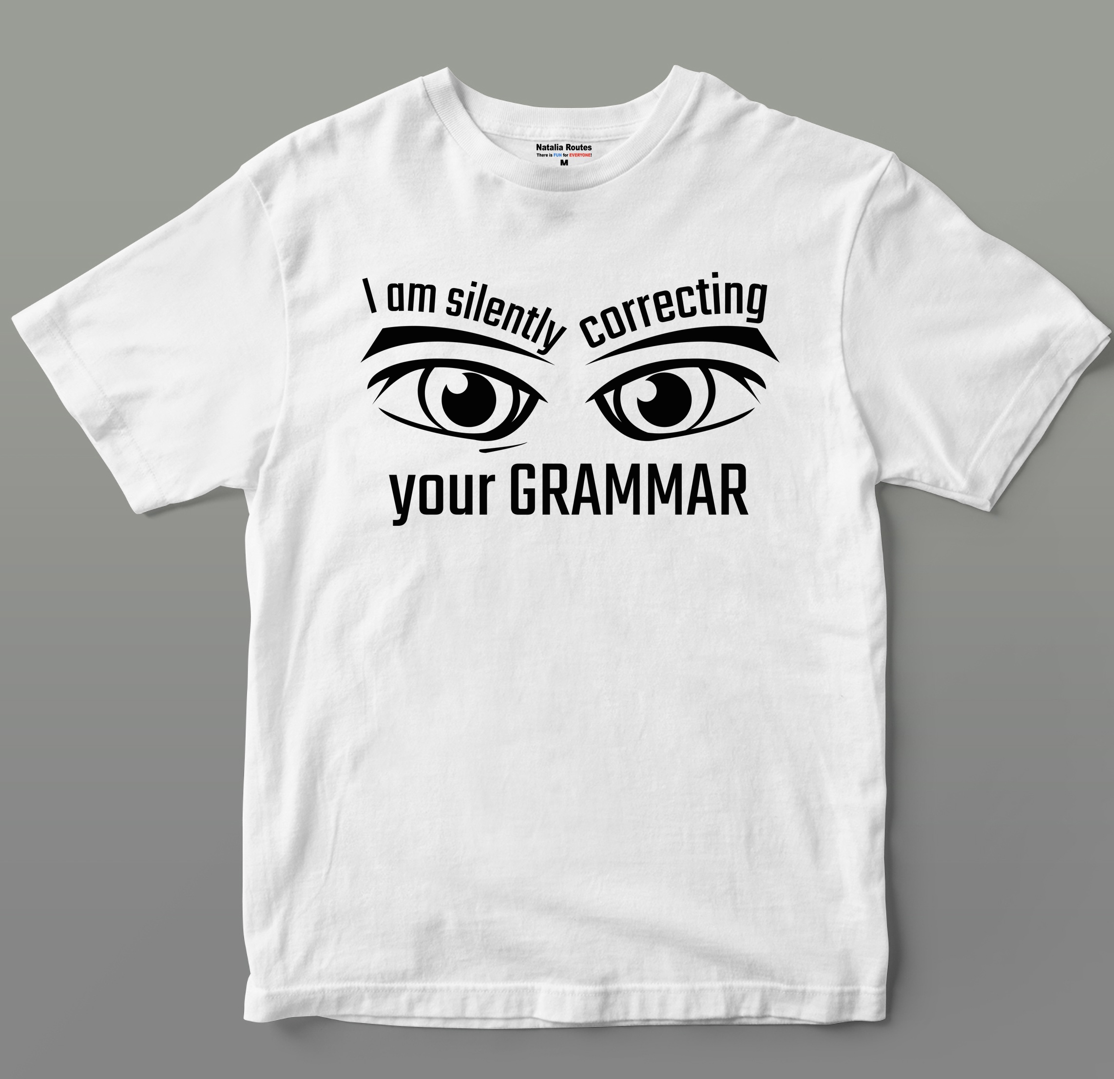 A unique oversized T-shirt “I am silently correcting your grammar”. Produced in Poland. Available sizes: M, L, XL. (95% cotton, 5% spandex)