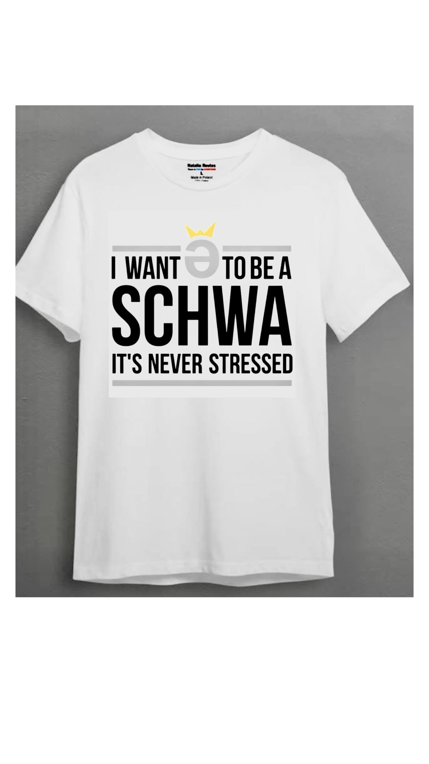 A unique oversized T-shirt “I want to be a schwa, it’s never stressed”. Produced in Poland. Available sizes: M, L, XL. Best quality: 95% cotton, 5% spandex.